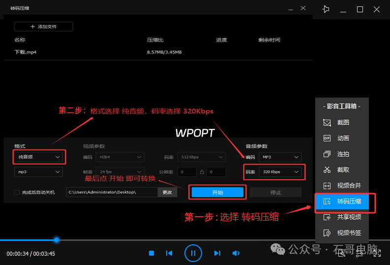 提示:另存为的音频文件为m4a格式或者mp4格式,如果需要mp3格式,可以使用其他音频软件进行格式转换,这里小编推荐使用QQ影音自带的mp3转换功能,免费而且无广告。